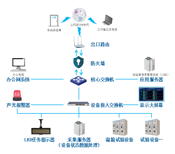 可對實驗室溫箱設備(例如三綜合試驗箱、老化試驗箱等)的運行狀態進行監控,實時獲取溫箱的溫度、濕度、氣壓等關鍵運行參數;可遠程控制溫箱的啟停與運行參數;可實現不同地域實驗室的數據全國聯網。