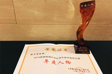黃敦鵬總經理榮膺“2016檢驗檢測認證行業年度評選風云榜年度人物”稱號,成為檢驗檢測行業的時代典范。