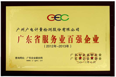 GRGT被廣東省企業聯合會及廣東省企業家協會評為“2013年度廣東省服務業百強企業”。
