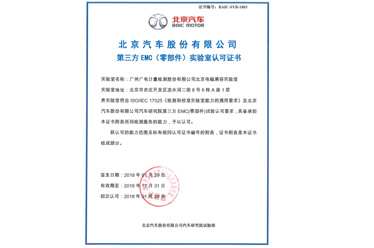 廣電計量無錫子公司先后獲得長城汽車、福特汽車的檢測試驗授權認可;廣電計量北京檢測基地獲得北京汽車第三方EMC(零部件)實驗室認可。