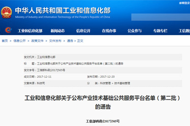 工業和信息化部關于公布產業技術基礎公共服務平臺名單(第二批),確定廣電計量等17家單位列入工業和信息化部產業技術基礎公共服務平臺名單(第二批)。