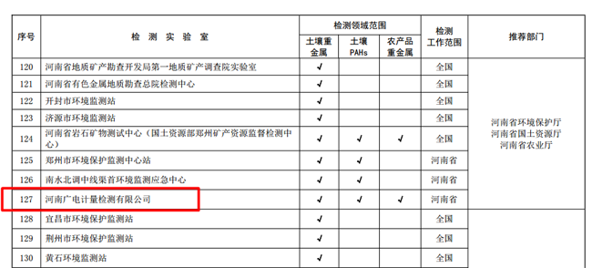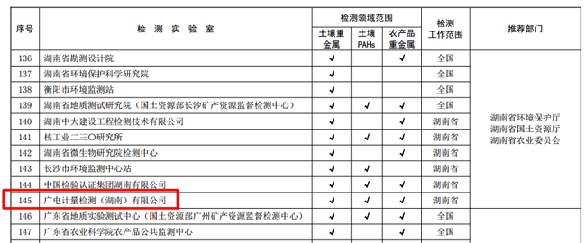 據(jù)悉,本次確定了首批233家檢測實驗室,當前主要承擔農(nóng)用地土壤污染狀況詳查樣品分析測試任務,其中全國僅6家第三方專業(yè)檢測機構入選,廣電計量河南子公司、湖南子公司,以全項目(土壤重金屬、土壤PAHs、農(nóng)產(chǎn)品重金屬)64項檢測標準全部通過的優(yōu)異成績上榜,展現(xiàn)了在土壤檢測領域的過硬技術實力。