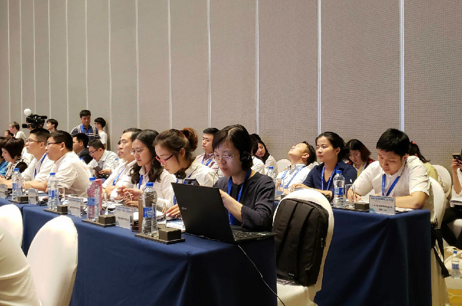 廣電計量環(huán)保技術(shù)專家(右一)出席會議與現(xiàn)場專家代表進(jìn)行交流