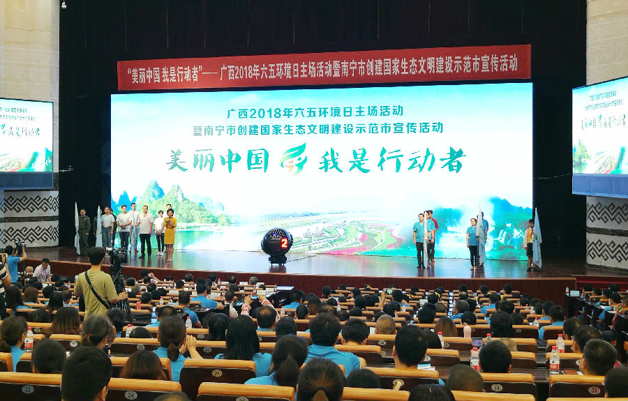 同一時間,廣西南寧,廣西六五環(huán)境日主場活動暨南寧市創(chuàng)建國家生態(tài)文明建設(shè)示范市宣傳活動在市人大會堂舉行。活動由廣西壯族自治區(qū)環(huán)境保護(hù)廳聯(lián)合南寧市人民政府主辦,邀請環(huán)保系統(tǒng)人員、環(huán)保企業(yè)、環(huán)保NGO組織等系列代表及媒體記者近800人參與。自治區(qū)人大常委會副主任張秀隆、南寧市副市長朱會東發(fā)表致辭,會上正式啟動了2018年《公民生態(tài)環(huán)境行為規(guī)范》。伴隨著《讓中國更美麗》的主題曲奏響和環(huán)保行動者集體發(fā)出的有力倡議,“美麗中國 我是行動者”主題實踐活動正式啟動,掀起了一股綠色環(huán)保宣傳風(fēng)暴。