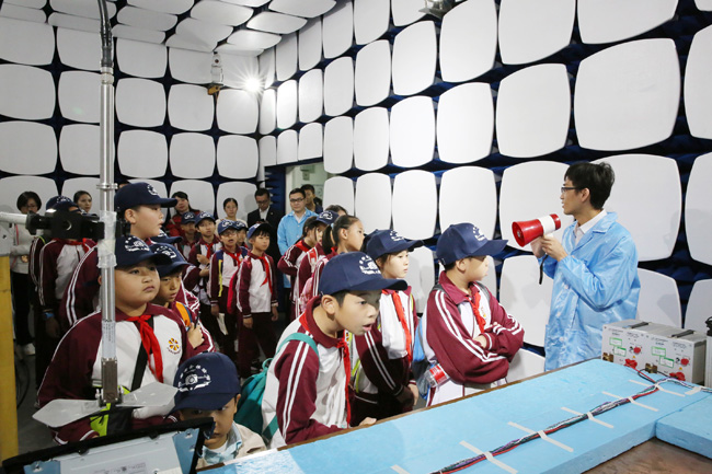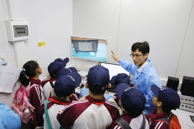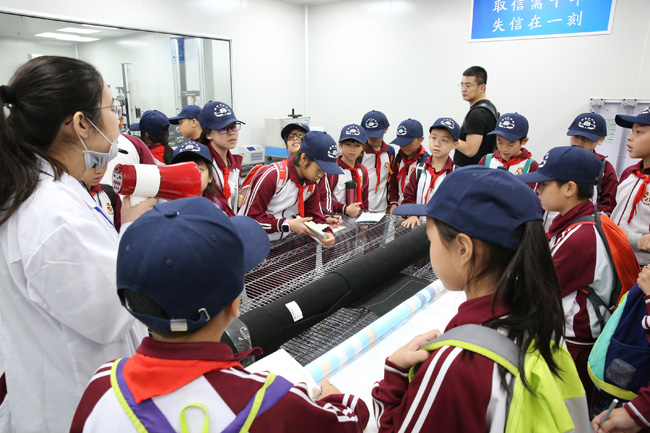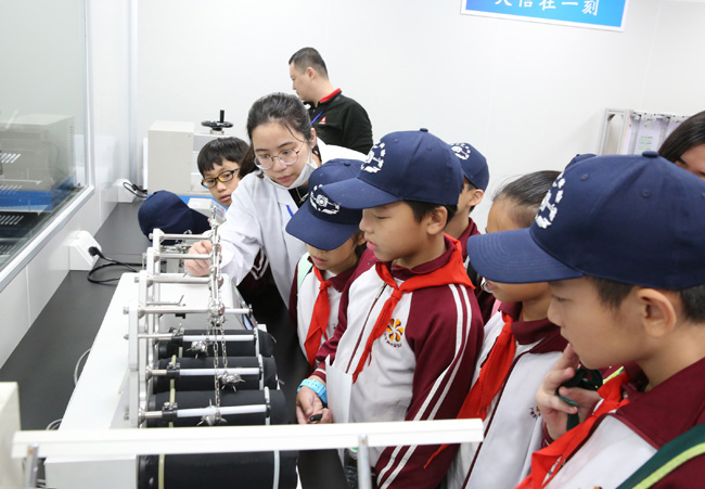 隨后,小記者團(tuán)來到計量校準(zhǔn)、電磁兼容檢測、化學(xué)分析、可靠性與環(huán)境試驗等實驗室,觀看了紡織品檢測、車載導(dǎo)航抗輻射電磁干擾試驗、汽車座椅測試等過程演示。面對陌生的儀器設(shè)備,孩子們化身“好奇寶寶”,紛紛舉手與技術(shù)人員交流互動。