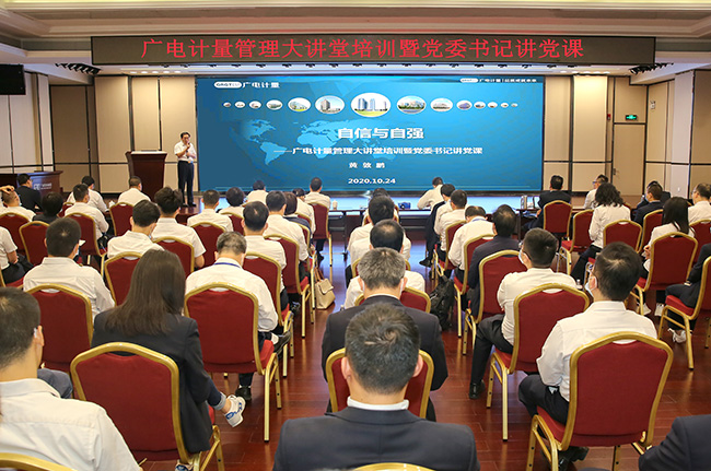 10月24日上午,2020年廣電計量管理大講堂培訓暨黨委書記講黨課在廣電平云廣場舉行。廣電計量黨委書記、總經理黃敦鵬擔任本期講師,宣貫解讀了《中國共產黨國有企業基層組織工作條例(試行)》,并圍繞“自信與自強”主題,分析在面臨百年未有之大變局的當前,中國道路與中國自信,且以“結構”為關鍵詞全面分析公司經營管理優勢以及“十四五”發展規劃,勉勵全體員工增強自信,拼搏自強,全力打造行業龍頭企業。