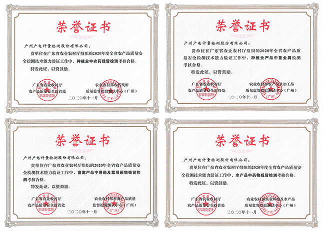 資訊中心公司新聞榮獲全項4A級!廣電計量通過廣東省農業農村廳2020年全省農產品質量安全檢測技術能力驗證