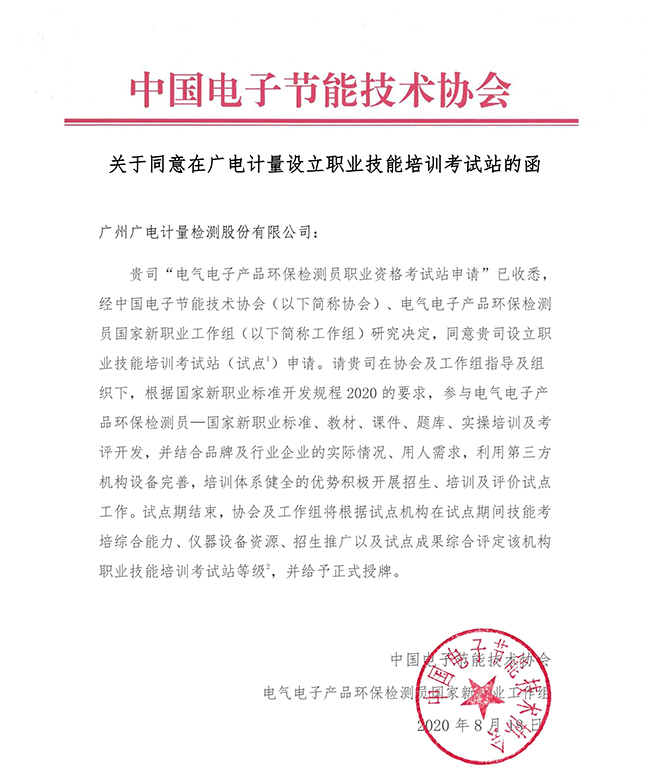 作為《標(biāo)準(zhǔn)》審定單位之一,廣電計(jì)量是中國(guó)電子節(jié)能技術(shù)協(xié)會(huì)“電氣電子產(chǎn)品環(huán)保檢測(cè)員 L”工作組副組長(zhǎng)單位、“電氣電子產(chǎn)品環(huán)保檢測(cè)員職業(yè)技能培訓(xùn)考試站”,近年來(lái)持續(xù)深耕電子電氣綠色制造與質(zhì)量提升領(lǐng)域,參與承擔(dān)了新職業(yè)的考點(diǎn)、考務(wù)、教務(wù)、教材等相關(guān)任務(wù),可為行業(yè)單位提供培訓(xùn)、考核與評(píng)價(jià)服務(wù),助力行業(yè)基礎(chǔ)人才建設(shè),為產(chǎn)品綠色制造保駕護(hù)航。