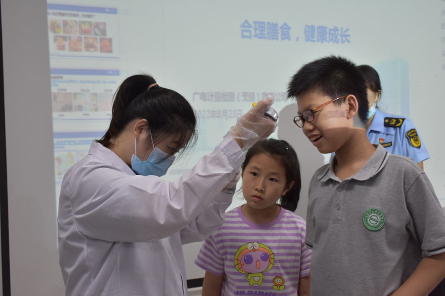 此外,作為無錫市濱湖區的“食品安全宣傳周”系列活動之一,濱湖區市場監管局“2022年青少年食品安全公益夏令營”也走進廣州廣電計量檢測無錫有限公司食品檢測實驗室,“零距離”體驗食品安全檢測。