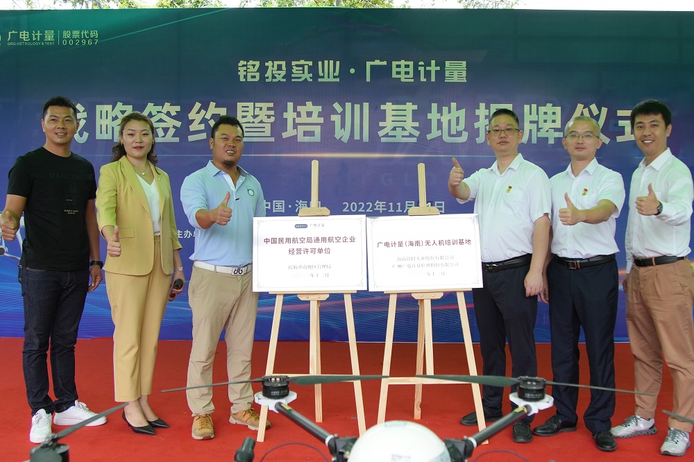 11月21日,廣州廣電計(jì)量檢測股份有限公司(簡稱廣電計(jì)量,股票代碼:002967)與海南銘投實(shí)業(yè)股份有限公司(簡稱銘投實(shí)業(yè))簽署戰(zhàn)略合作協(xié)議,并舉行了“廣電計(jì)量(海南)無人機(jī)培訓(xùn)基地揭牌儀式”。雙方將強(qiáng)強(qiáng)聯(lián)合、優(yōu)勢互補(bǔ),為海南省無人機(jī)產(chǎn)業(yè)培養(yǎng)高素質(zhì)勞動者和技術(shù)技能型人才,共同助推海南省無人機(jī)通用航空事業(yè)高質(zhì)量發(fā)展!