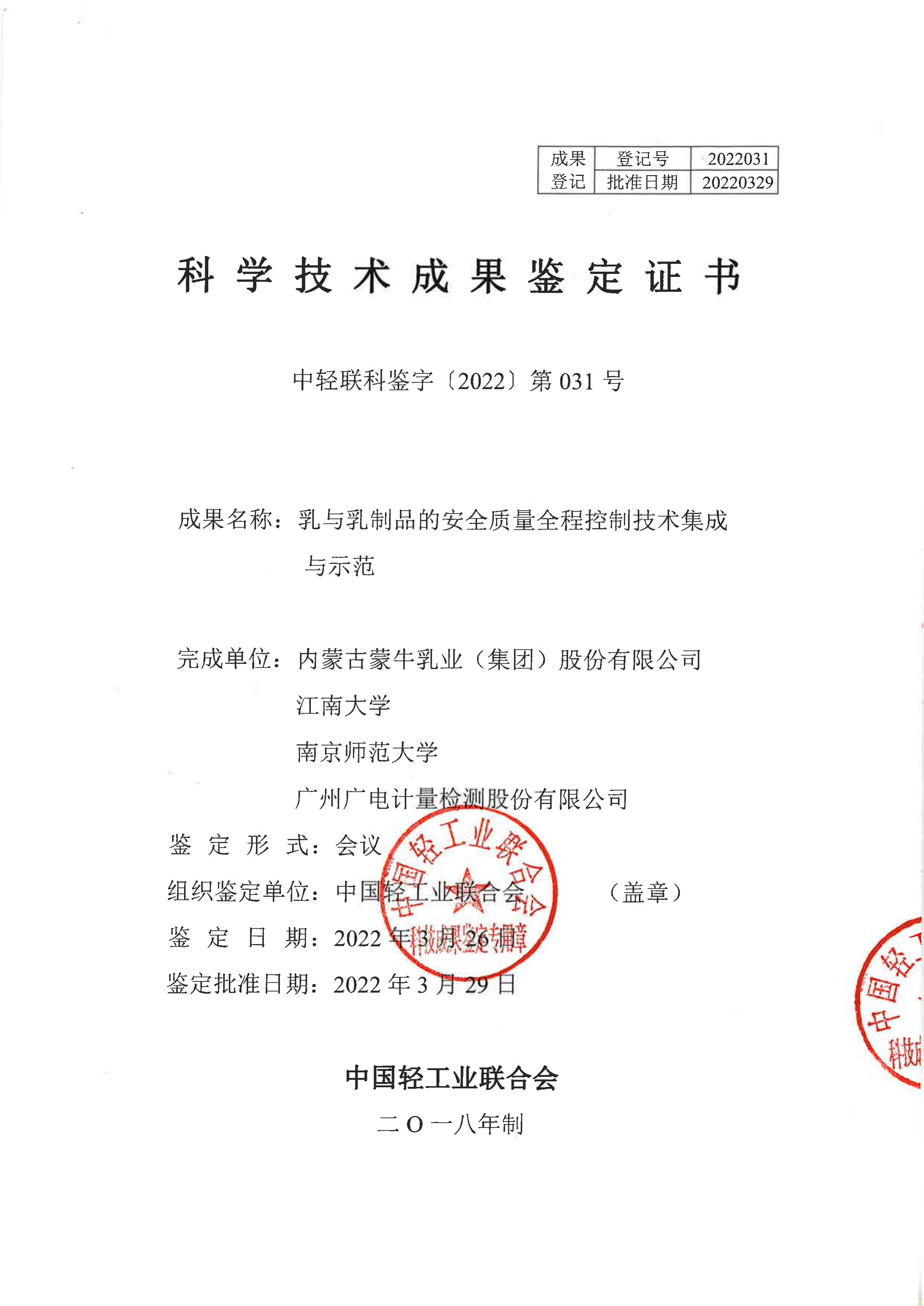 近日,中國輕工業(yè)聯(lián)合會組織有關(guān)專家召開了“十三五”重點(diǎn)研發(fā)計劃項(xiàng)目技術(shù)成果鑒定會。廣電計量參與的《乳與乳制品加工靶向物質(zhì)危害控制技術(shù)集成應(yīng)用示范》項(xiàng)目(以下簡稱“項(xiàng)目”)順利通過成果鑒定。專家組通過聽取研究團(tuán)隊匯報、審閱相關(guān)資料、質(zhì)詢討論等環(huán)節(jié),一致認(rèn)為項(xiàng)目整體技術(shù)達(dá)到了國際先進(jìn)水平,具備廣闊的推廣與應(yīng)用前景。