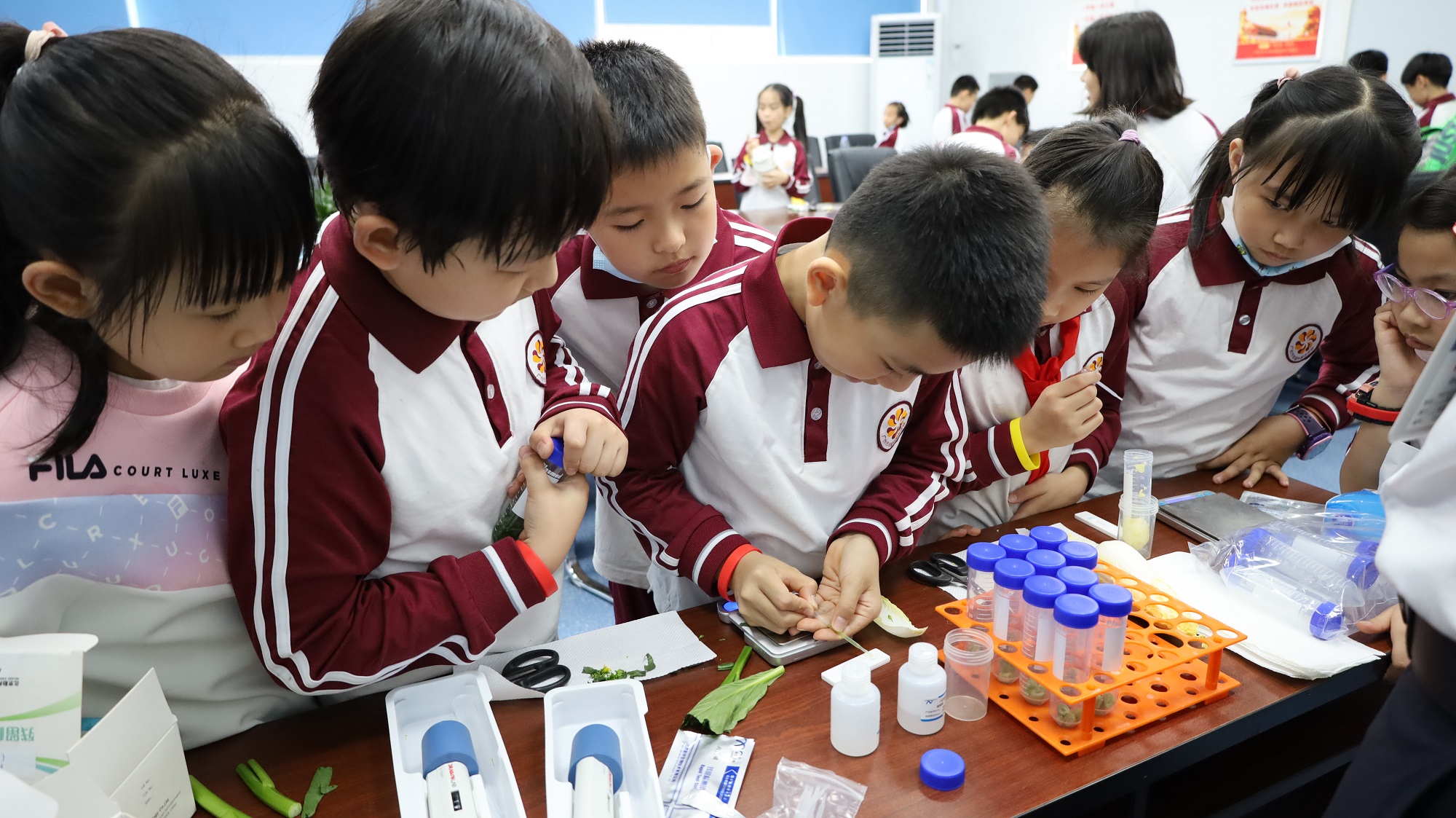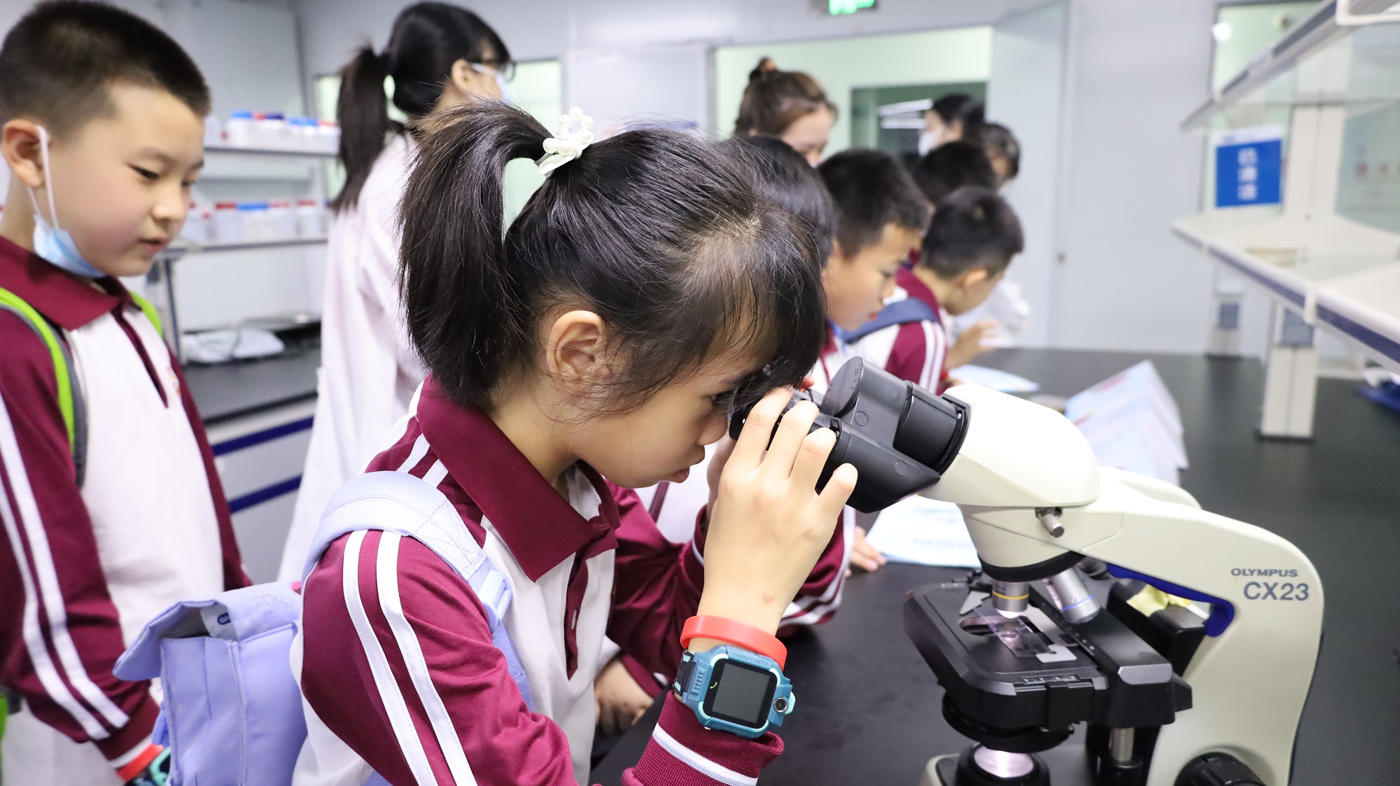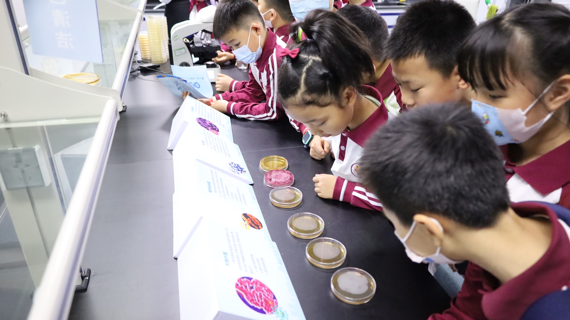 微生物觀測環節,小學生們認真觀測細菌培養皿,并通過顯微鏡看到細菌的“真面目”