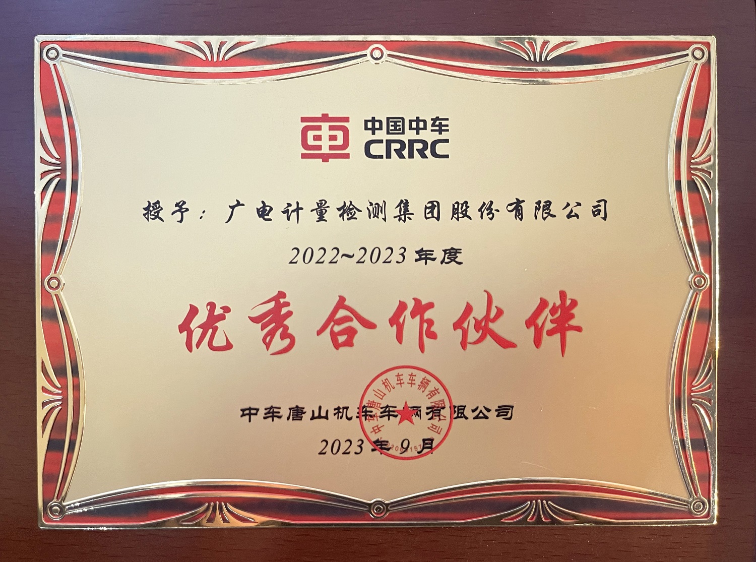 廣電計量獲中車唐山授予“優秀合作伙伴”榮譽