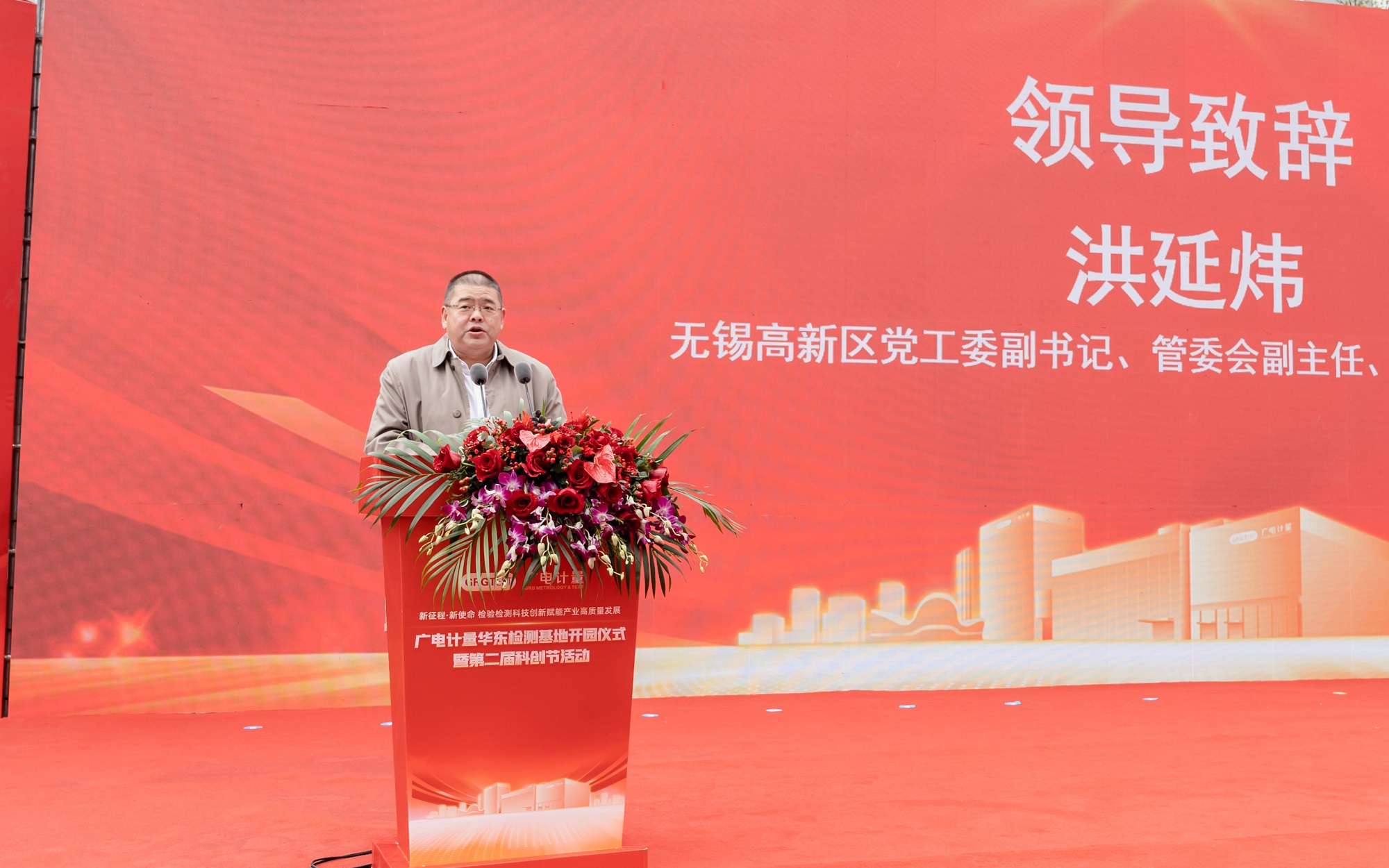 洪延煒致辭表示,無錫廣電計量為長三角經濟圈的航空、半導體、汽車、新能源等國民經濟重要行業提供計量檢測技術支撐。無錫高新區(新吳區)將秉承親商、護商理念,為項目建設和企業發展提供最有力的支持、最高效的服務、最全面的保障,實現合作共贏。