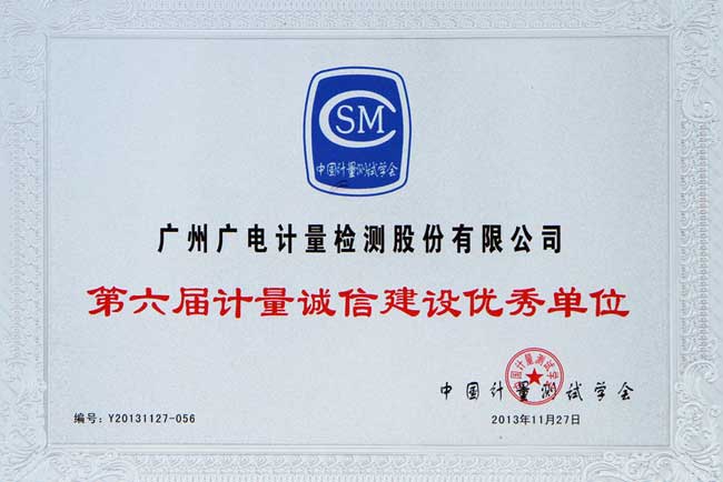 GRGT被評為“第六屆計量誠信建設優秀單位”