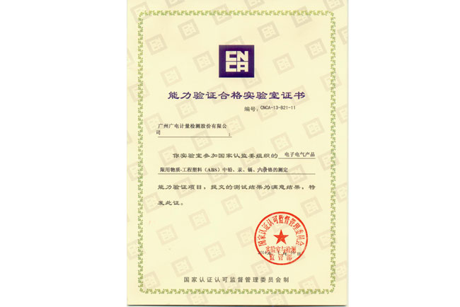 CNCA-13-B21 | 電子電氣產品限用物質—工程塑料(ABS)中鉛、汞、鎘、六價鉻的測定 | Pb、Hg、Cd、Cr6+ | 滿意 |