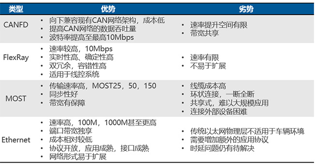 電子電氣架構(gòu)衍進(jìn)的新要求,以及智能網(wǎng)聯(lián)汽車對數(shù)據(jù)傳輸提出的新挑戰(zhàn),都決定了傳統(tǒng)的總線技術(shù)(以CAN/LIN為代表)無法滿足某些特定域的信息傳輸及主干網(wǎng)大規(guī)模的信息交互。