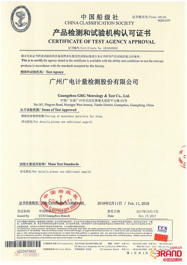 日前,廣州廣電計量檢測股份有限公司(簡稱廣電計量)先后獲得國際船級社協會核心成員、世界兩大權威船舶技術檢驗機構中國船級社(CCS)及美國船級社(ABS)船舶有害物質檢測機構認可,成為華南地區首家同時獲得中美兩大船級社有害物質檢測認可的第三方計量檢測機構。據悉,這是繼2010年廣電計量首次獲得中國船級社(CCS)電氣電子產品試驗認可及無石棉檢測認可之后,再度獲得的船舶檢測領域重要認可。依據CCS、ABS相關規范、規則和程序的要求,廣電計量通過一系列嚴格審核,順利獲得兩大船級社頒發的船舶有害物質檢測認可證書,這既是對廣電計量專業檢測技術能力的進一步肯定,同時也將推動廣電計量在 “綠色造船”進程中發揮更積極的作用,為我國打造綠色健康船舶業再添檢測技術動力。