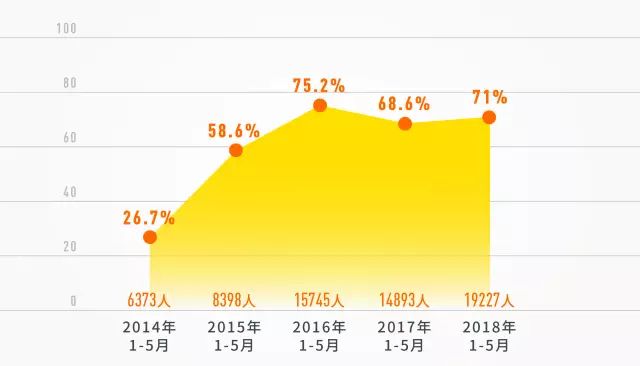 2014年以來,1-5月給予黨紀政務處分人數及其占處理人數比例走勢圖