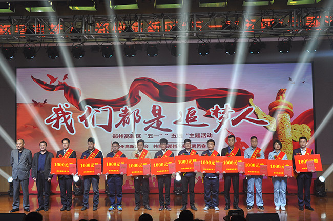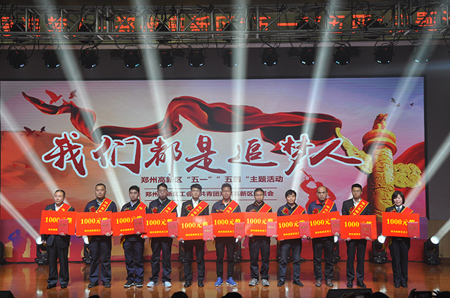 魏亮(左三)獲鄭州高新區(qū)“金牌工人”榮譽(yù)稱號(hào)