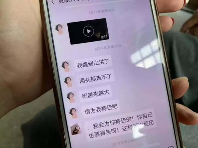 4分鐘后,黃文秀對家人說,“我遇到山洪了,兩頭都走不了,雨越來越大,請為我禱告吧”。沒有人預料到,這成了她留在世上的最后一段話。
