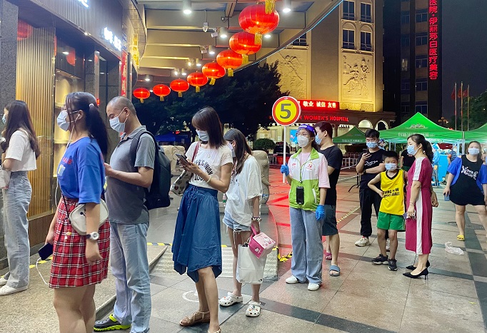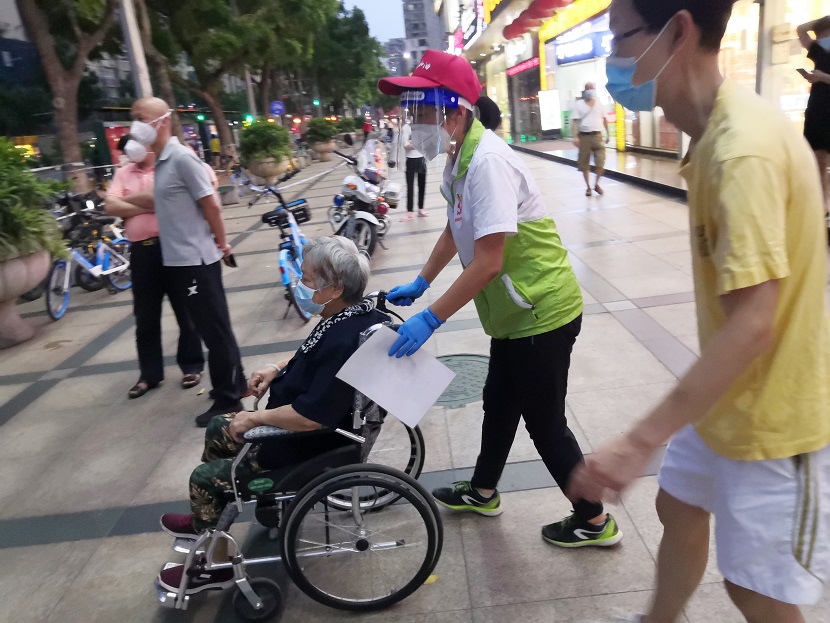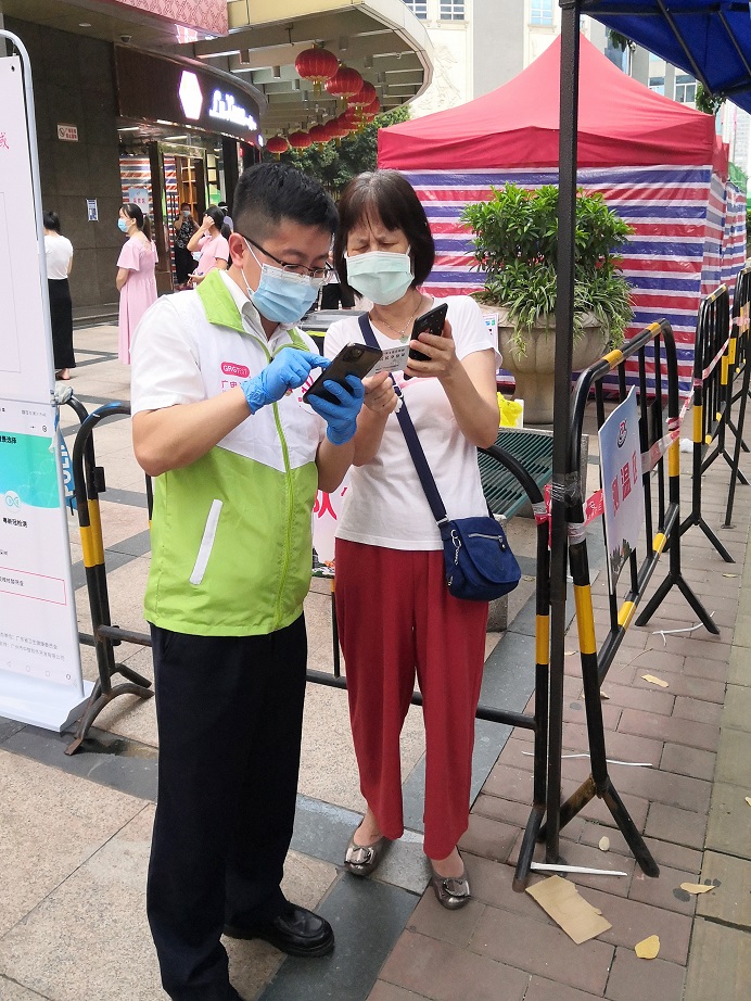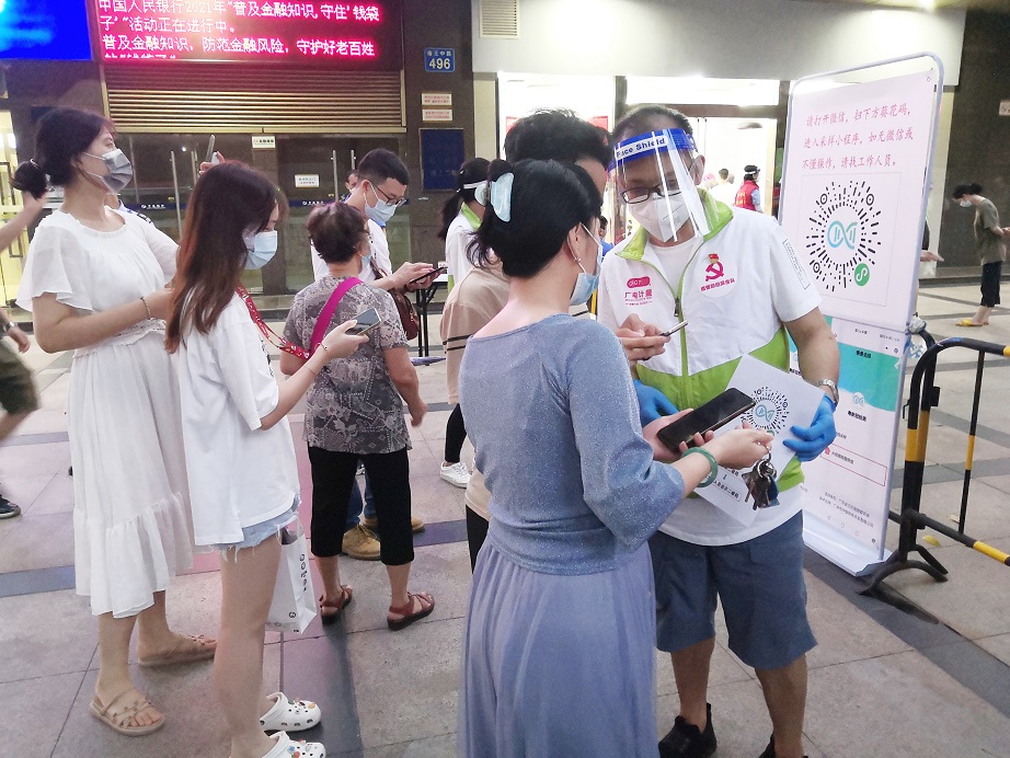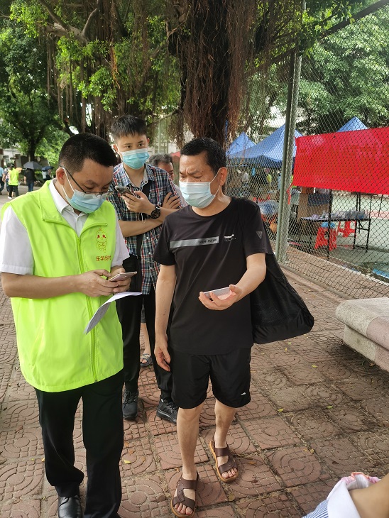 (照片組圖:志愿者指引大家掃碼填寫相關(guān)信息,主動(dòng)協(xié)助