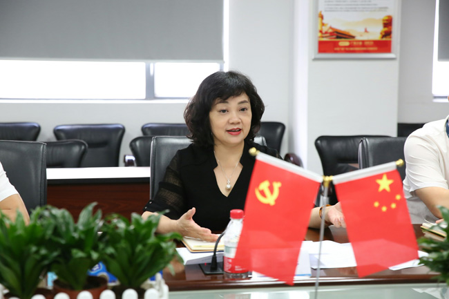 梁玉琴一行聽取了廣電計量黨委書記、總經理黃敦鵬關于公司經營情況、黨風廉政建設責任制落實情況、意識形態工作責任落實情況、黨建工作開展情況以及黨史學習教育開展情況的工作匯報,對今年以來廣電計量所取得的各項成績給予充分肯定,并與參會同志進行了座談交流。