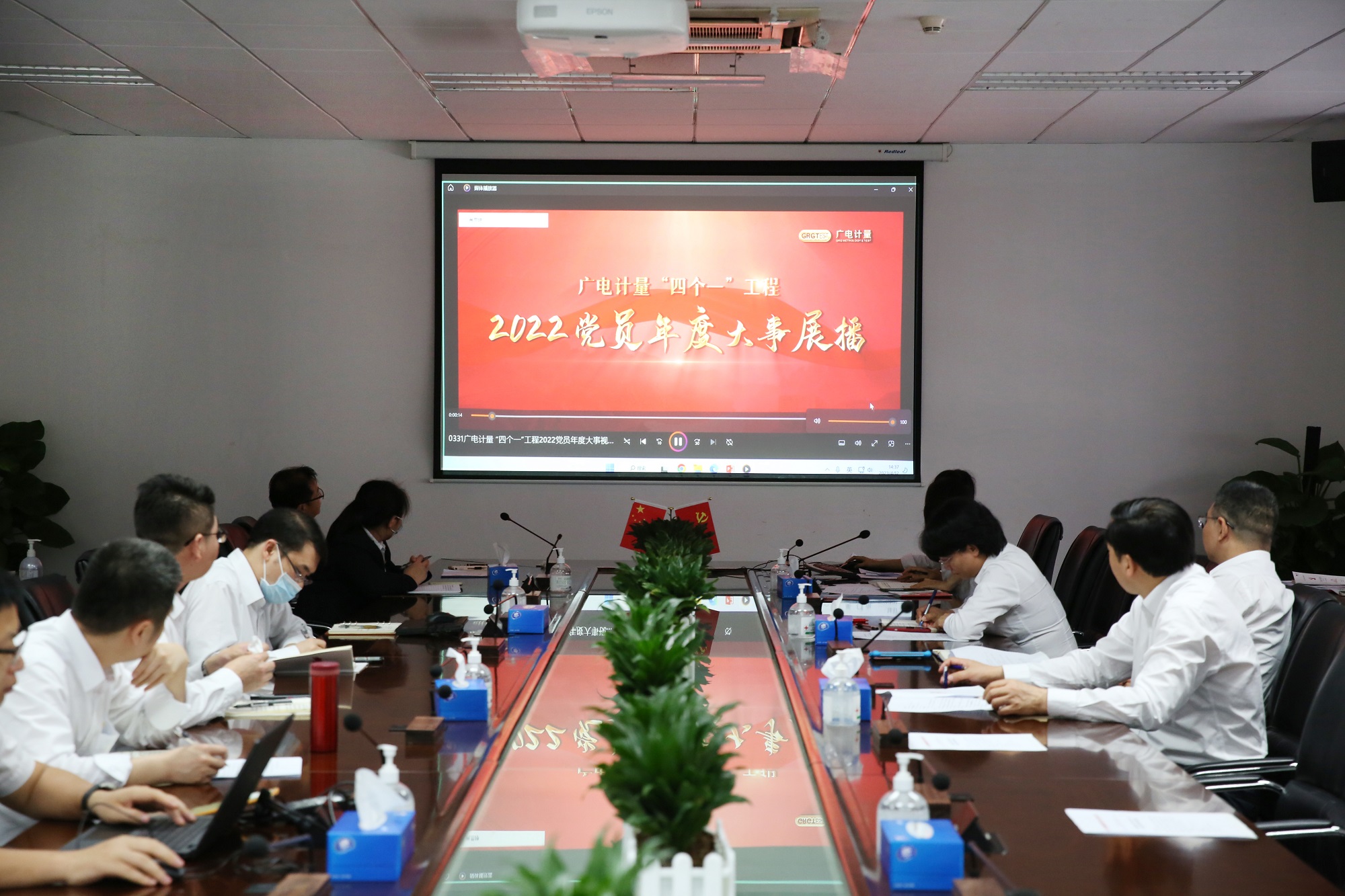 首先,與會黨員共同觀看了“四個一”工程2022年度黨員大事展播。2022年,公司黨委圍繞中心工作,大力推動“四個一”工程黨建品牌做深做實,全體黨員堅守廣電計量平臺,匯聚起公司發(fā)展的磅礴力量,定目標(biāo)、亮底色、攻難關(guān)、樹榜樣、全年共完成514件黨員大事,在各個方面實現(xiàn)了自我突破,鐫刻下堅守平臺、快樂工作、精彩生活的年度印記。