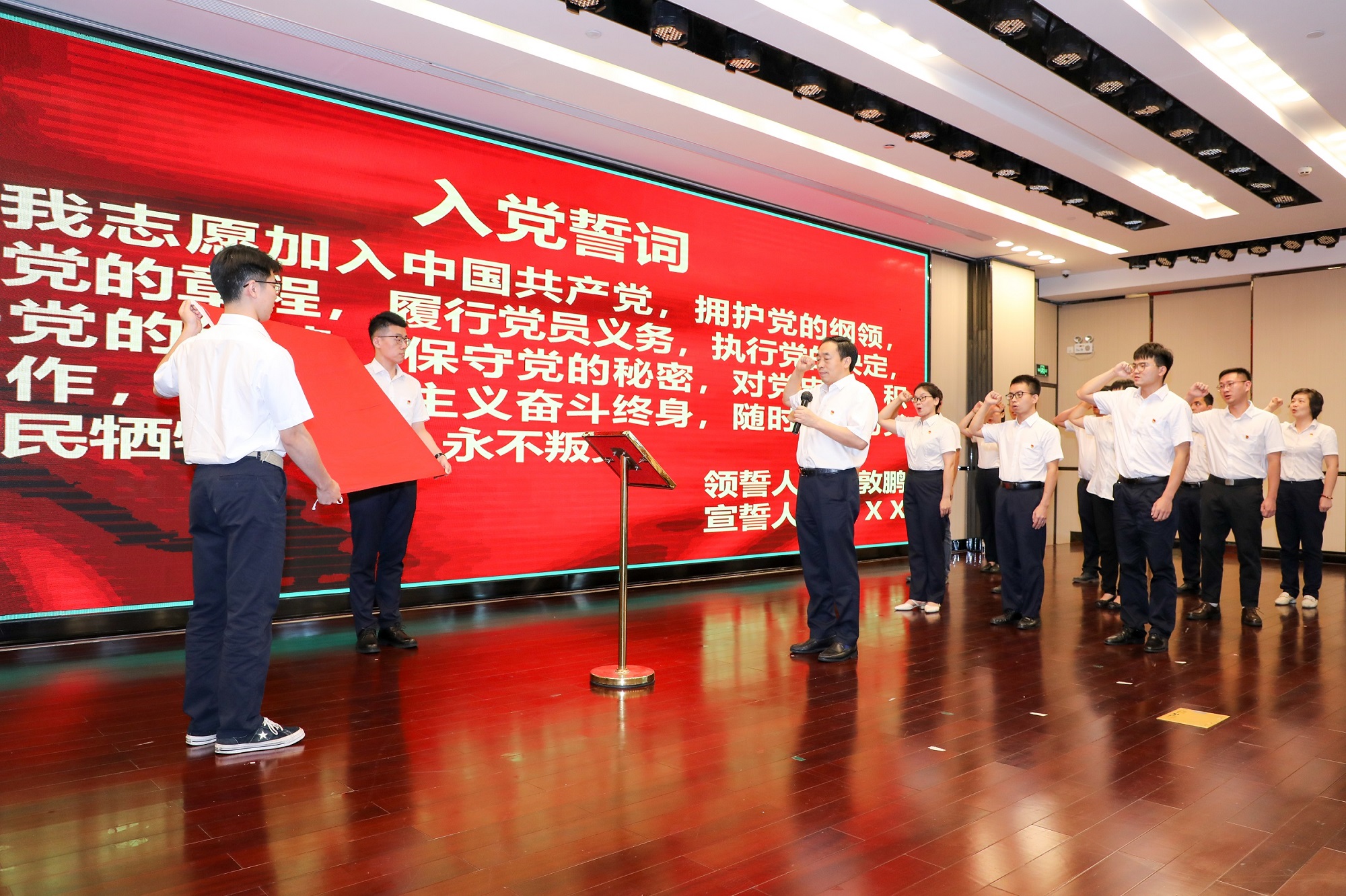 會(huì)議舉行了莊嚴(yán)的入黨宣誓儀式,在全體黨員的見(jiàn)證下,老黨員為新黨員代表佩戴黨徽。在黃敦鵬的帶領(lǐng)下,總部新黨員上臺(tái)宣誓,全體黨員起立重溫入黨誓詞。