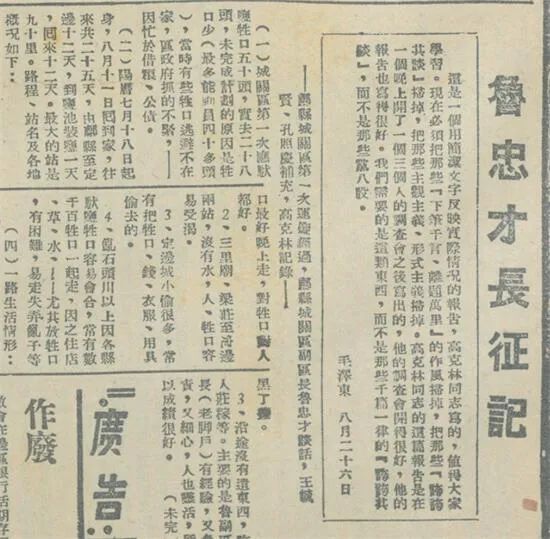毛澤東看過這篇內(nèi)容簡潔、語言樸實(shí)、條理清晰的調(diào)查報(bào)告后倍加推崇,并特地寫了一段按語: